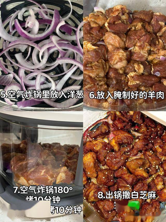 以下是根据您提供的五种羊肉菜品(空气炸锅孜然羊肉、红烧羊肉、羊肉萝卜汤、葱爆羊肉、萝卜羊肉粉)的详细解析与制作步骤整理。内容基于参考图片中的信息,结合多角度进行系统化归纳,确保每道菜的做法清晰、完整、可操作性强。