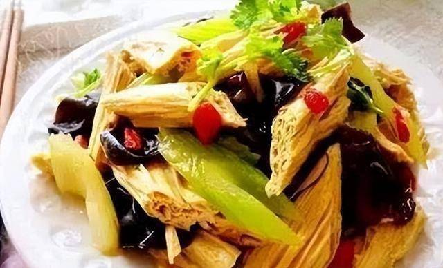 | 水芹菜炒腐竹 | 富含膳食纤维,促进肠道蠕动 |