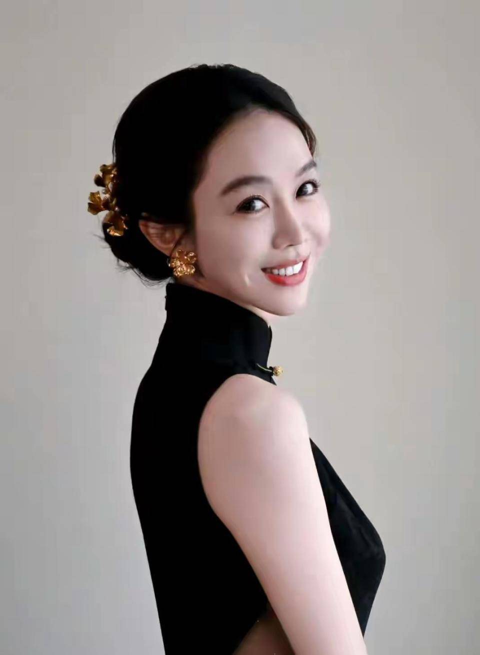 姜妍5岁开始学舞,沈阳民族艺术学校的训练让她拥有漂亮的肩颈线。 旗袍的立领设计恰好突出这个优势,而无袖剪裁则展现了她常年健身的手臂线条。 她走路时步距控制得极好,高开衩处露出的腿部始终保持在若隐若现的尺度,这是她童年舞蹈老师教的“含蓄的张扬”。