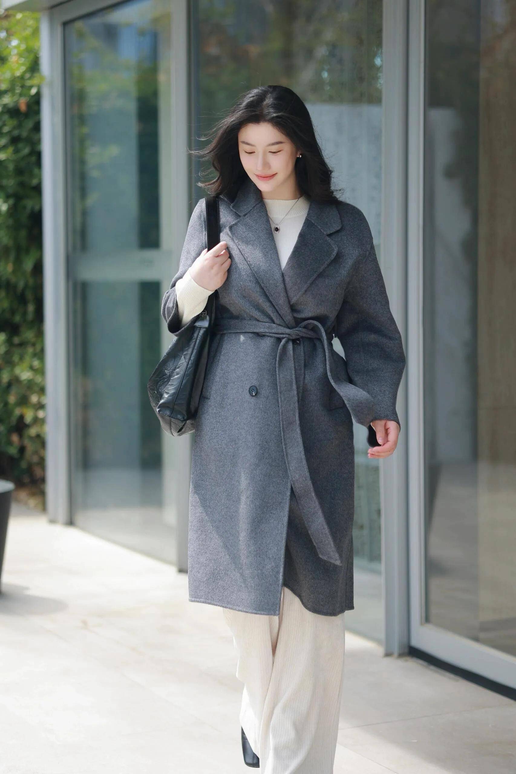 大衣轻披肩,线条流畅如画,