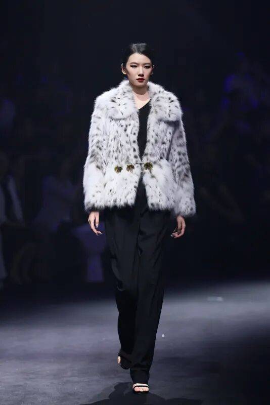 黑色颜色的服装在和毛绒皮草外套之间的搭配,厚实蓬松也多了温暖的暖意。