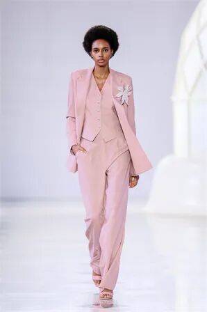 粉色颜色之间的搭配,在西服的三件套的搭配中,干练利落也多了一些柔和粉嫩感。