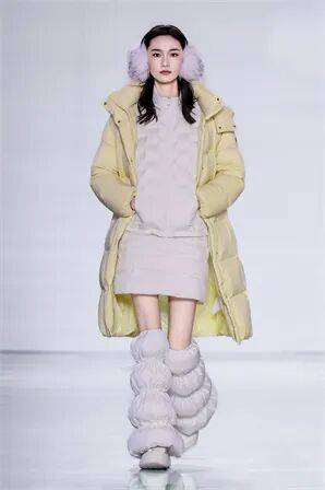 浅灰色内搭在低调中,还多了套装裙的优雅减龄,而在和嫩黄色羽绒大衣之间的搭配,也在减龄的青春中多了一些层次温暖感。