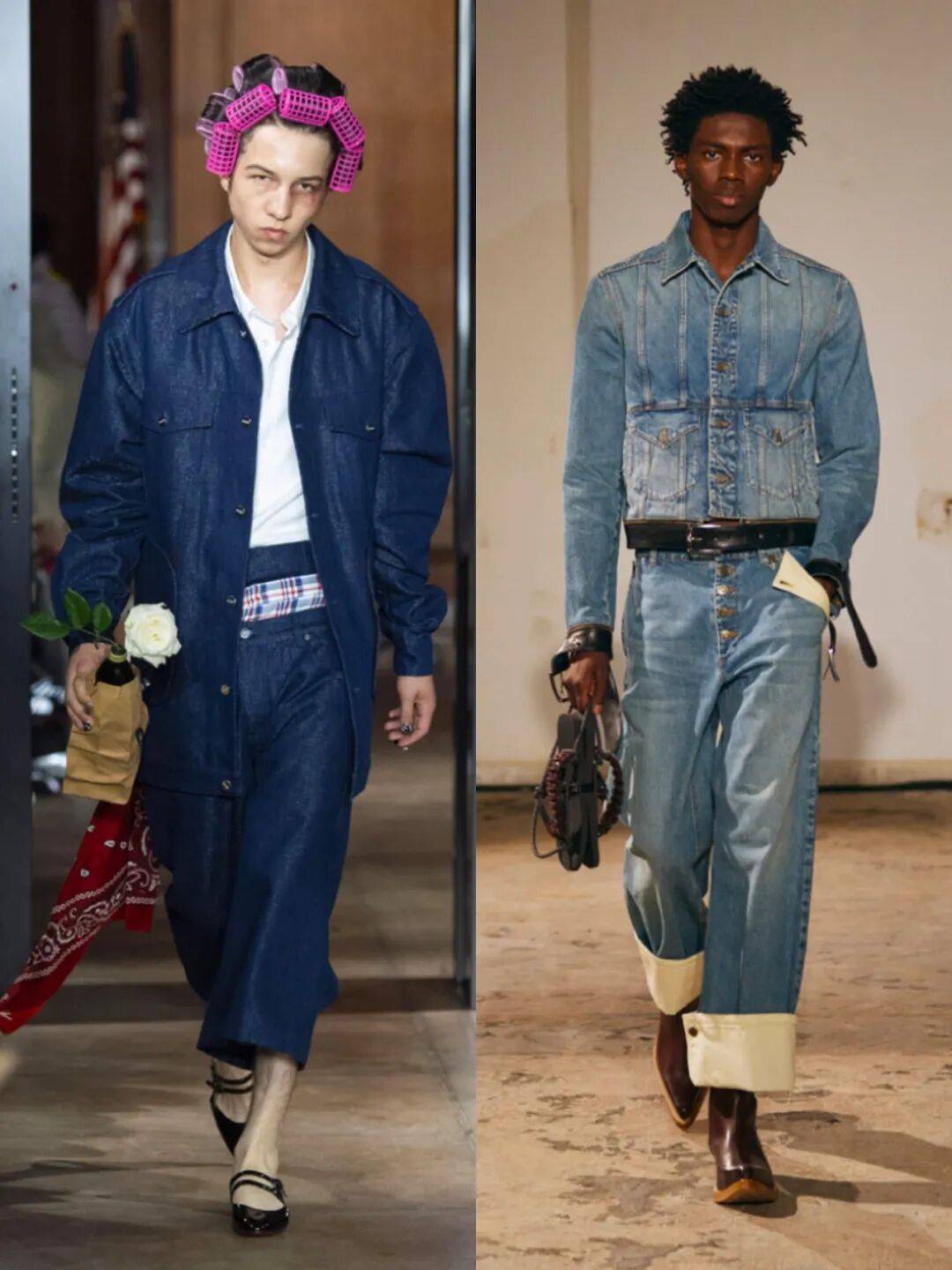 最后是牛仔套装。它也是我最近个人关注度最高的类别之一。但全套牛仔的难点就在“难度”:牛仔的色差、洗水、质地变化太多,很多时候上下一起穿,反而很容易出现意外的不平衡。