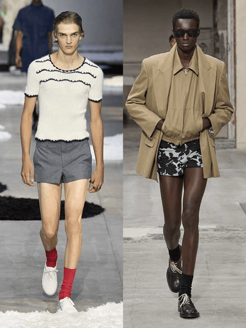 第一条,从短裤开始,尤其是更极端的“迷你短裤”。在现实生活里,男生对短到大腿根的长度确实长期有心理门槛,但趋势就是这样:曝光次数越多,接受度越高。到了现在,它已经从“很难想象”变成“好像也没那么陌生”的单品了。