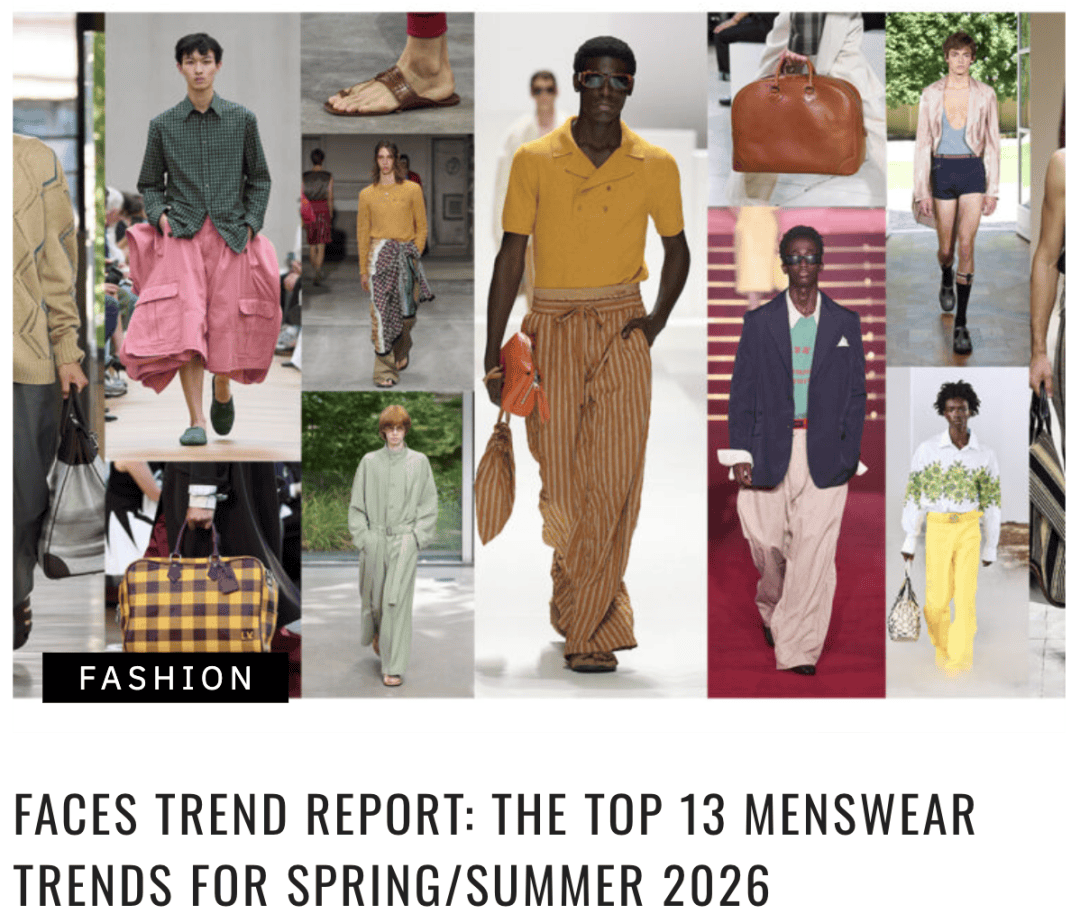 2026春夏男装趋势可归纳为五大关键词——更短的下装、更松弛的轮廓、材质/表面的趣味、配饰回归、脚下更开放。