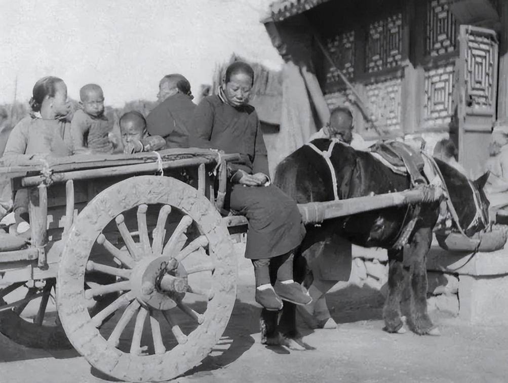 这是一张普通人家出行的老照片。照片中的驴车是这家人的全家财产,车板由长木桩搭成,上面铺着一些破旧的被褥,勉强可以当做座椅,然而这已经是他们最好的交通工具。相比于私家车,即使是搭乘黄包车也被认为是奢侈,大多数普通百姓一生中甚至都没有机会见到汽车。拥有一辆这样的驴车,已经是无比的幸福。所以,照片中的这家人表情中透着一种朴素的喜悦——他们终于能够全家出行了。今天的社会发展迅速,曾经被认为奢侈的事情,如今已经变得普遍。这种变化提醒我们,时间的珍贵和生活的幸福。