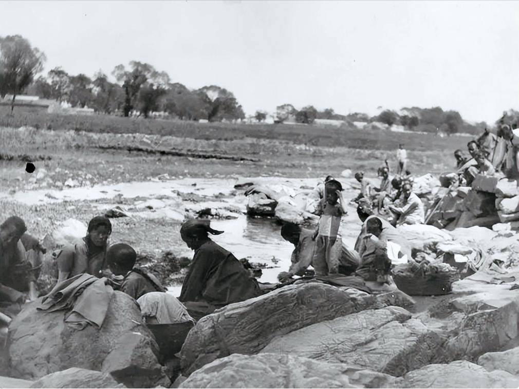 在这张照片中,一群农家妇女正聚集在河边洗衣。她们的衣服破旧,脚下穿的是磨损的草鞋,脸上写满了疲惫。她们用手中的木棒和砧板搓洗衣物,这一切显现出她们生活的艰辛。那时,农村妇女几乎没有任何社会资源或知识技能,她们在旧社会里几乎处于最底层,生活艰难。这样的场景揭示了过去社会中最为不公和残酷的一面,提醒我们不能忘记历史的苦难。今天的社会,虽然面临一些问题,但已经大大改善了女性的处境。我们应心怀感恩,感恩于今天这个更加公正、仁爱的时代。