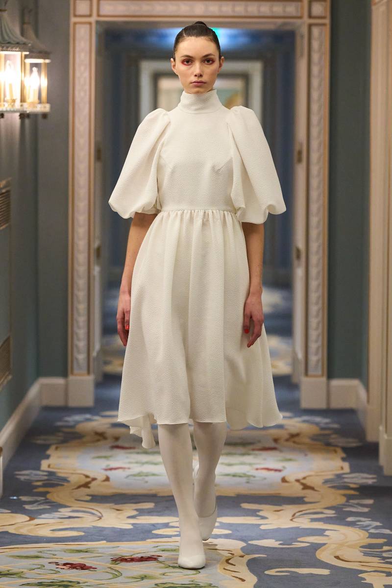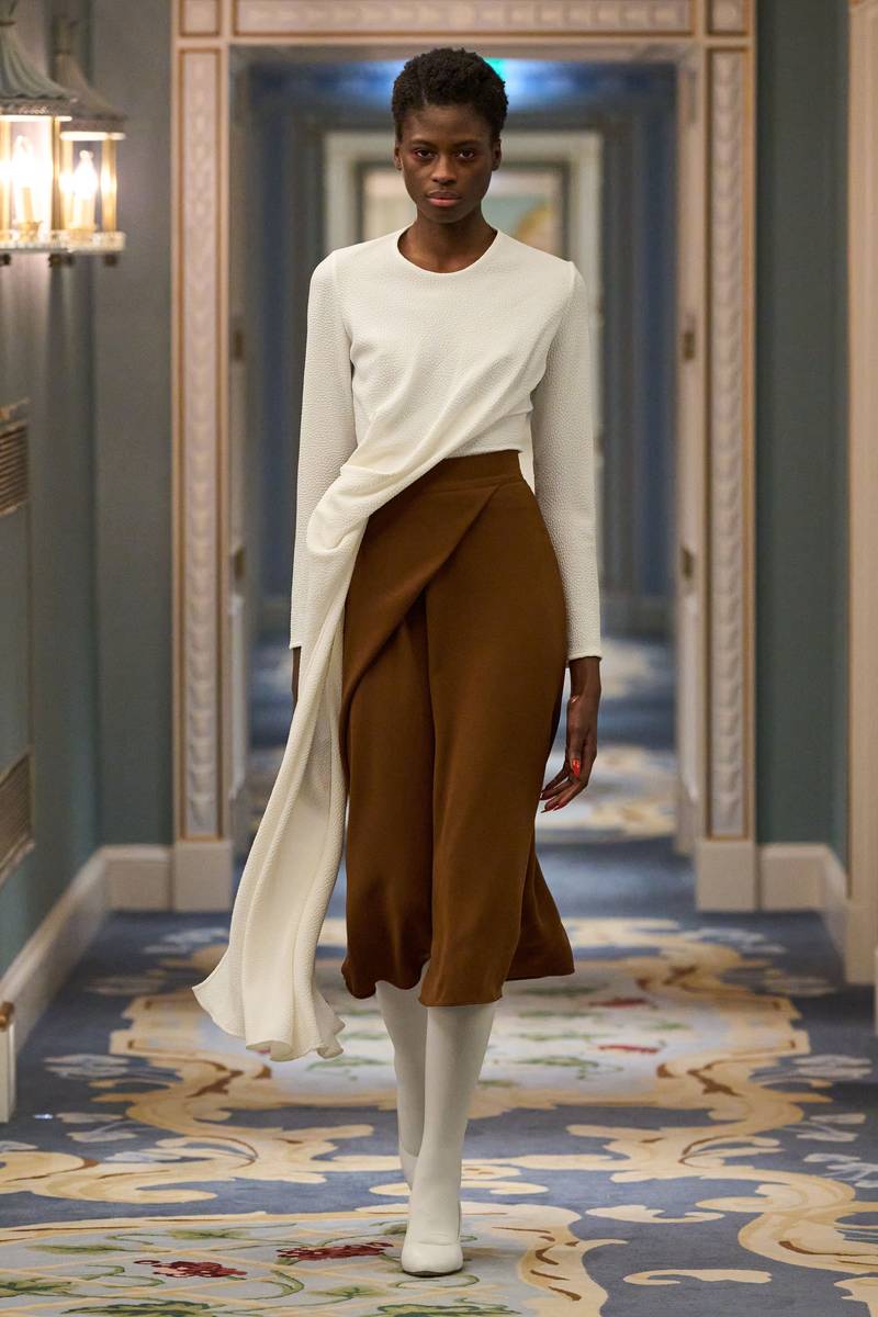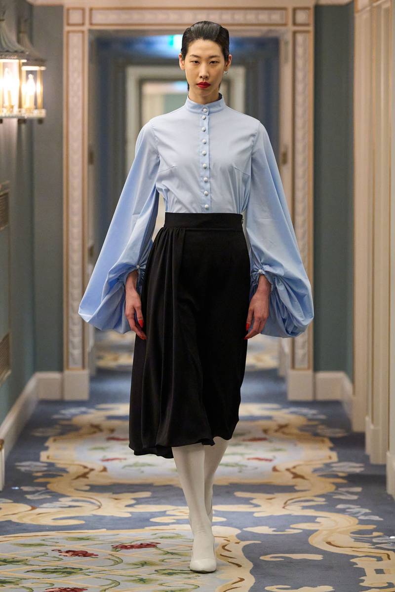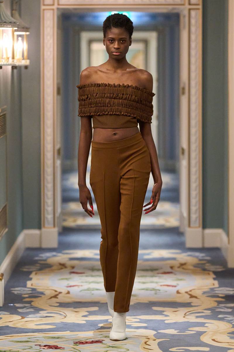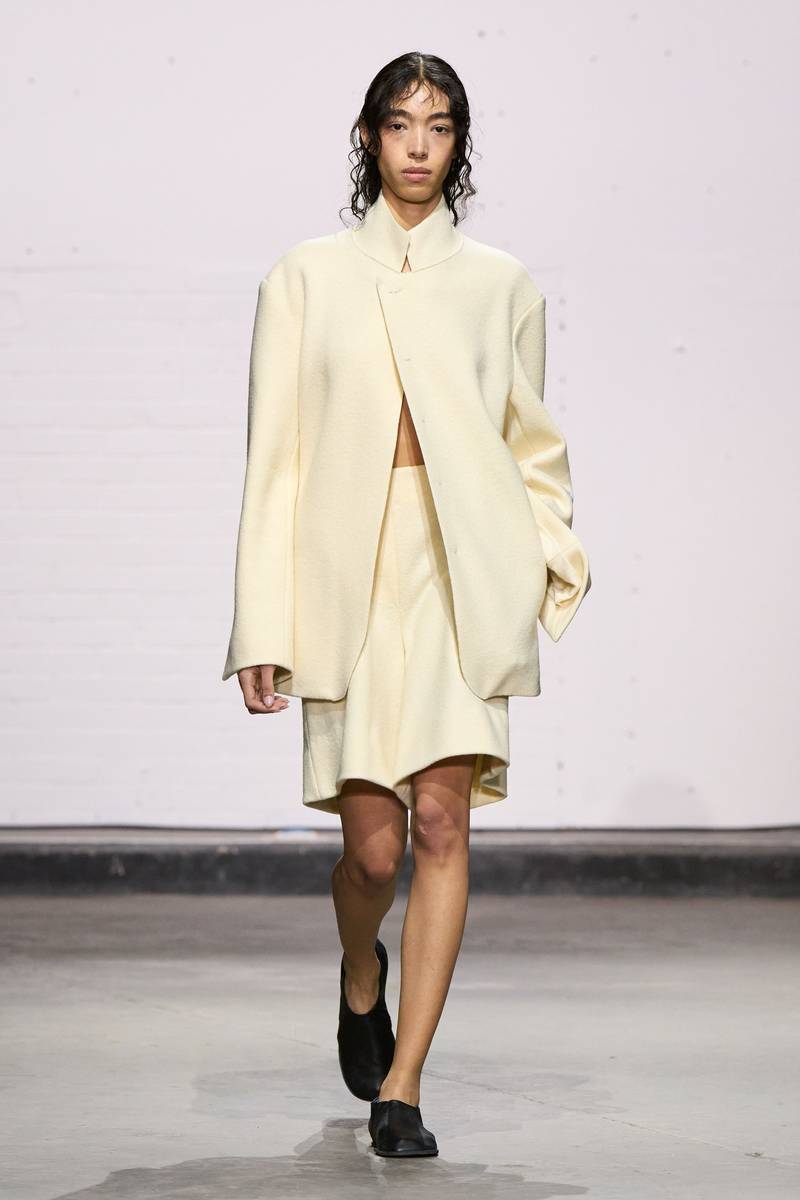Edeline Lee本季延续了“经典女性元素与廓形融合”的品牌基因,以20世纪复古剪裁为基底,叠加科技感材质,营造出“时空交错”的奇妙美学。