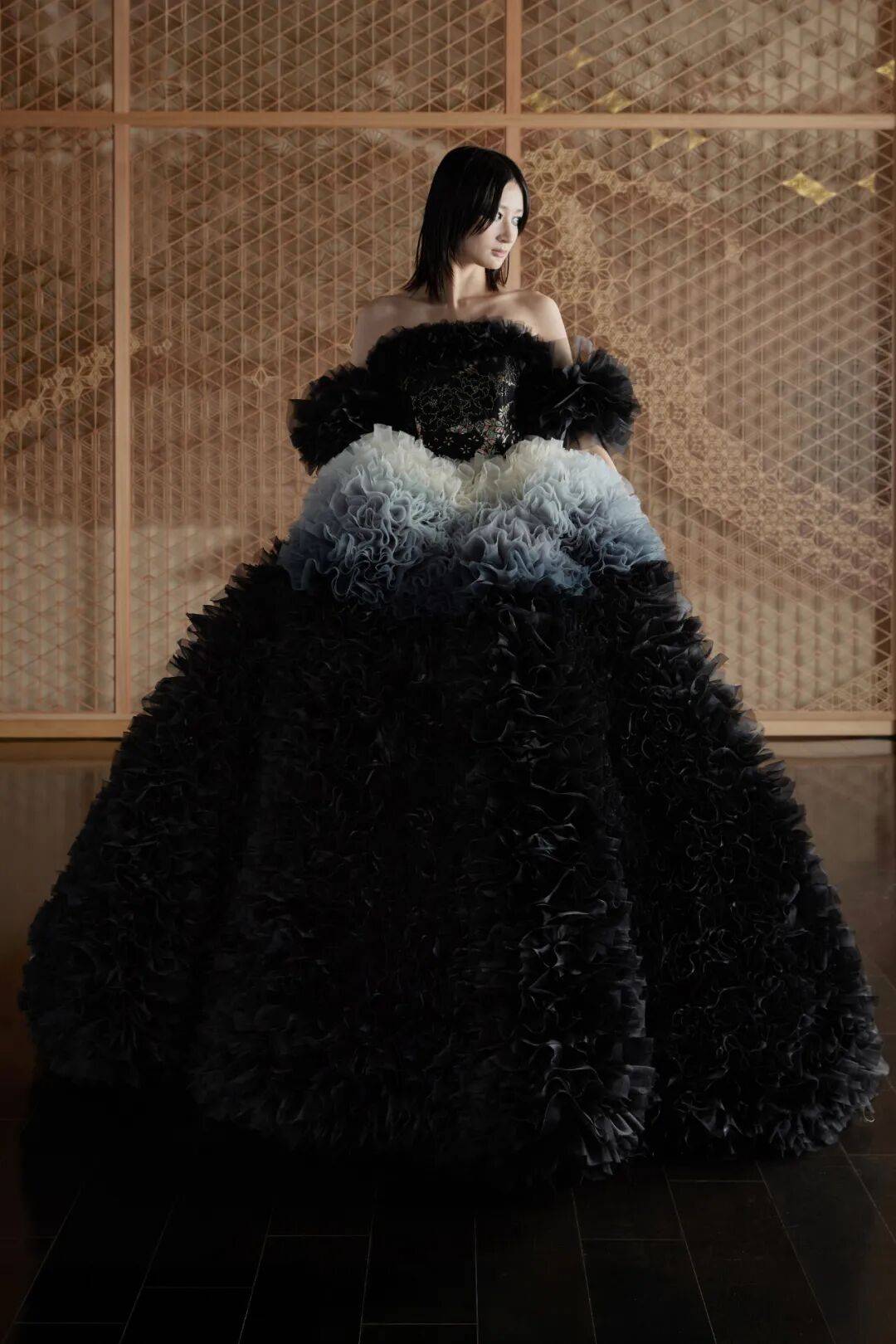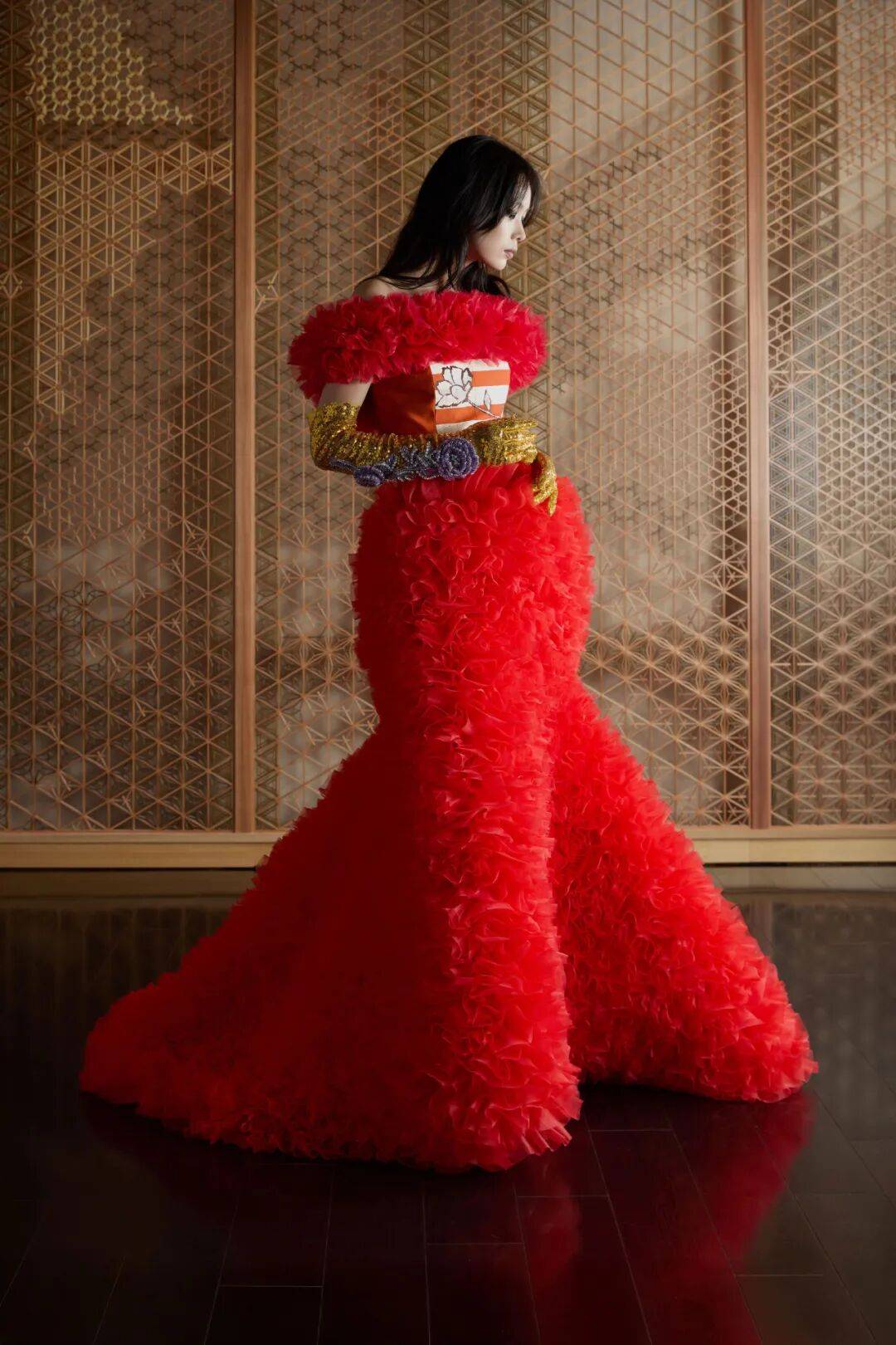 设计展现出"对传统与现代的完美平衡,在尊重日本传统工艺的同时大胆突破婚纱的常规界限"。