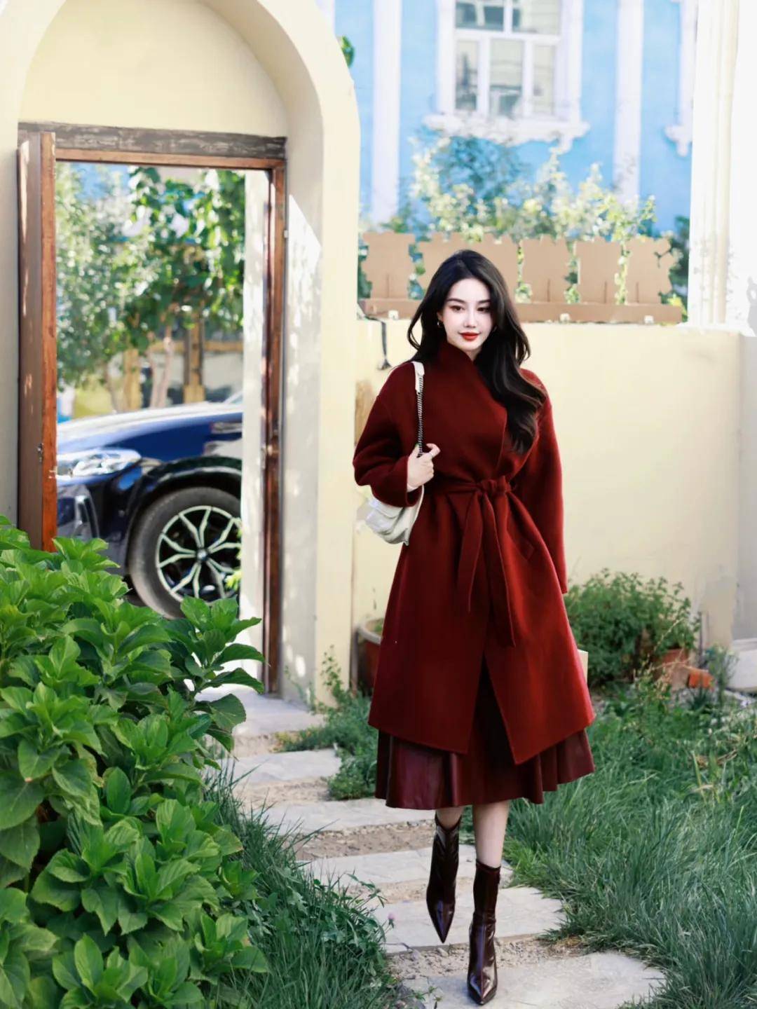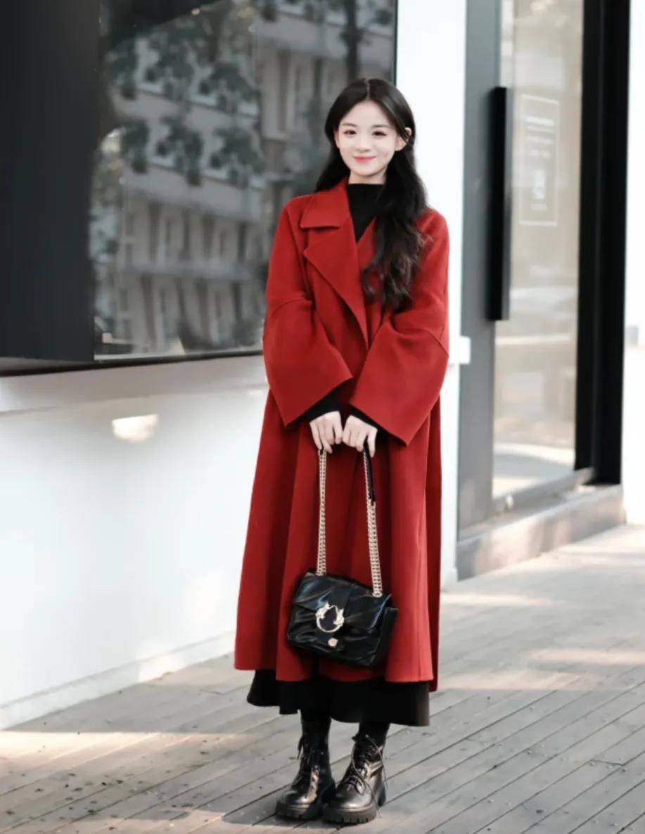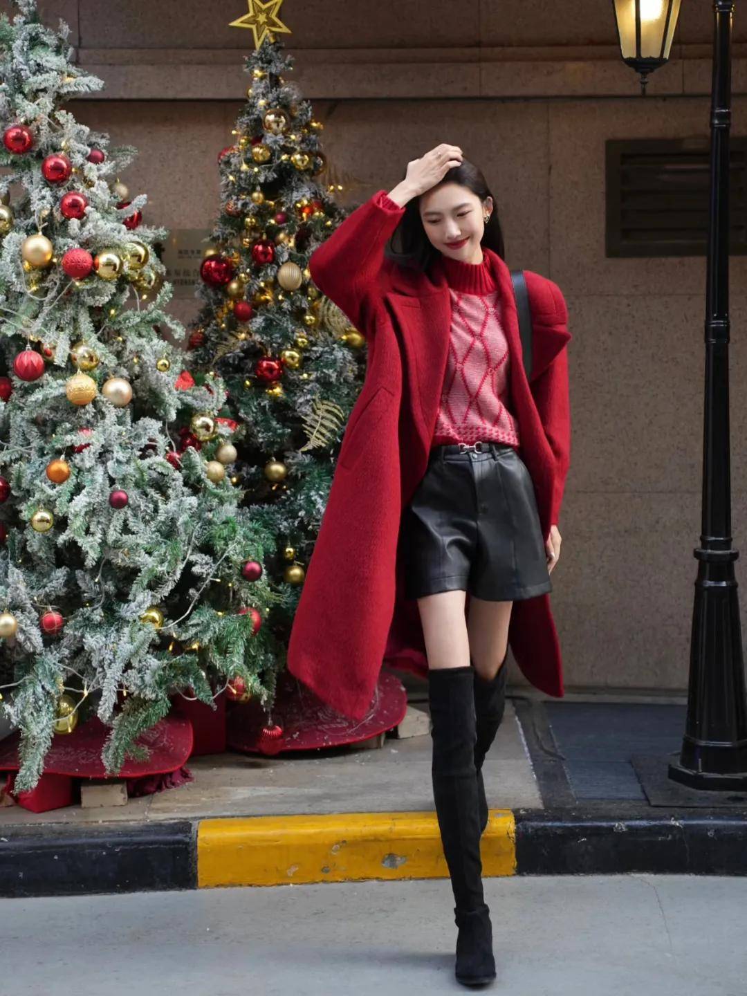 距离春节的到来仅剩下30多天了。我们的着装也开始迎接喜庆的气氛,一件经典的红色大衣是最佳选择。