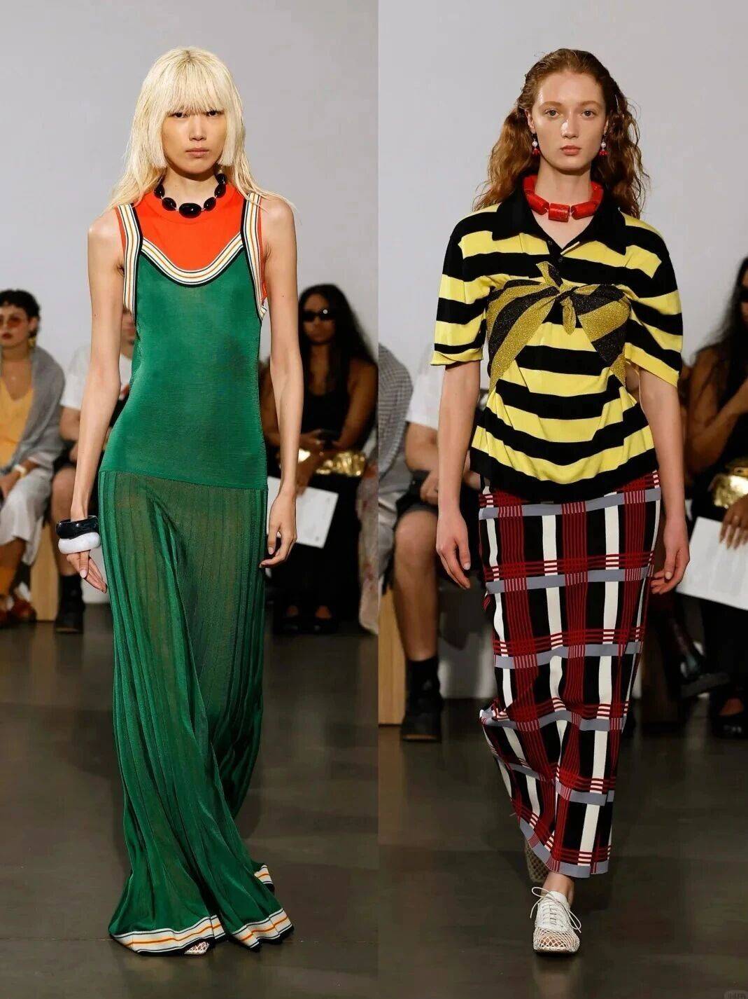 系列强调色彩、形状与图案的运用,常以红、黄、绿等高饱和色调与黑白经典色碰撞,结合几何色块、抽象纹理等艺术感元素,营造极具冲击力的视觉效果。色彩跨度大却和谐统一,从柔和淡紫、清新果绿到明艳粉红、撞色条纹,每一组配色都传递着热烈与活力。