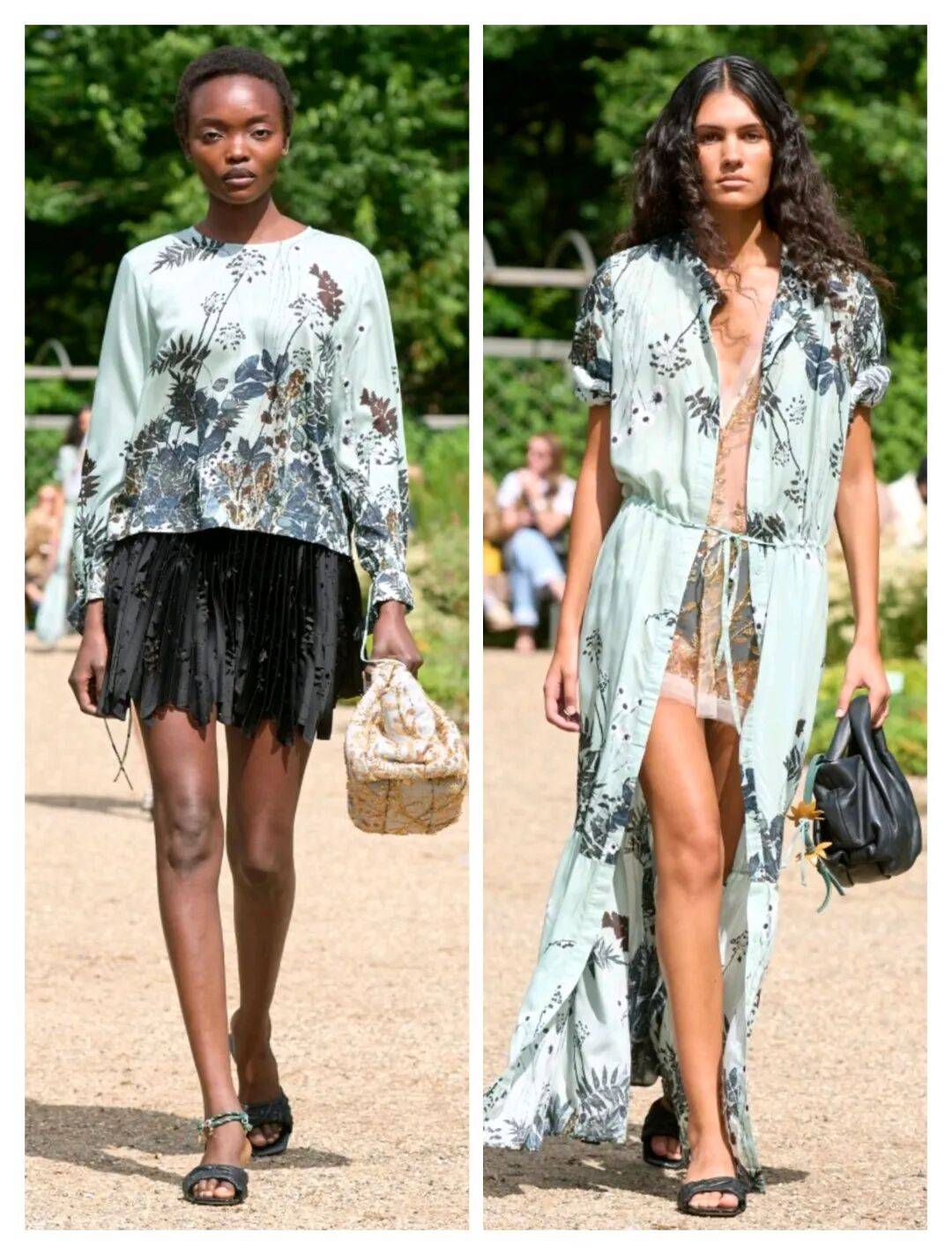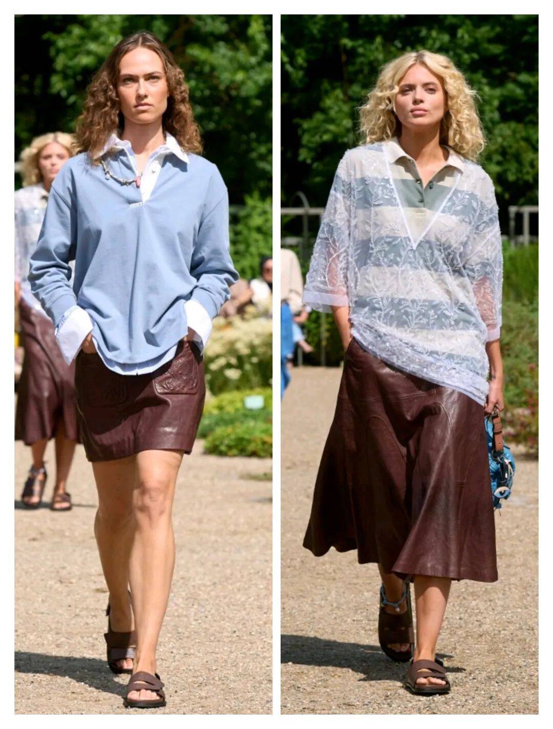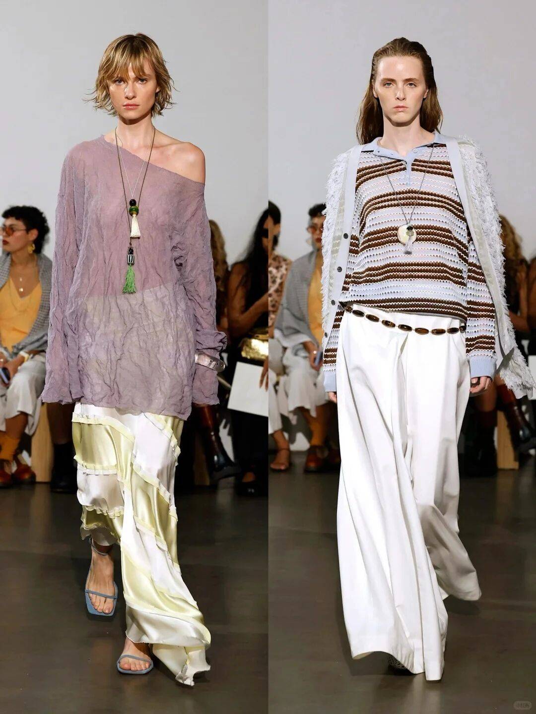 廓形以宽松、垂坠的剪裁为主,如阔腿裤、oversize上衣,传递出自由无拘的穿衣态度。同时通过腰带、饰品等细节塑造腰线,避免过度宽松带来的拖沓,在随性中保留精致感,展现出不被定义的女性风格。