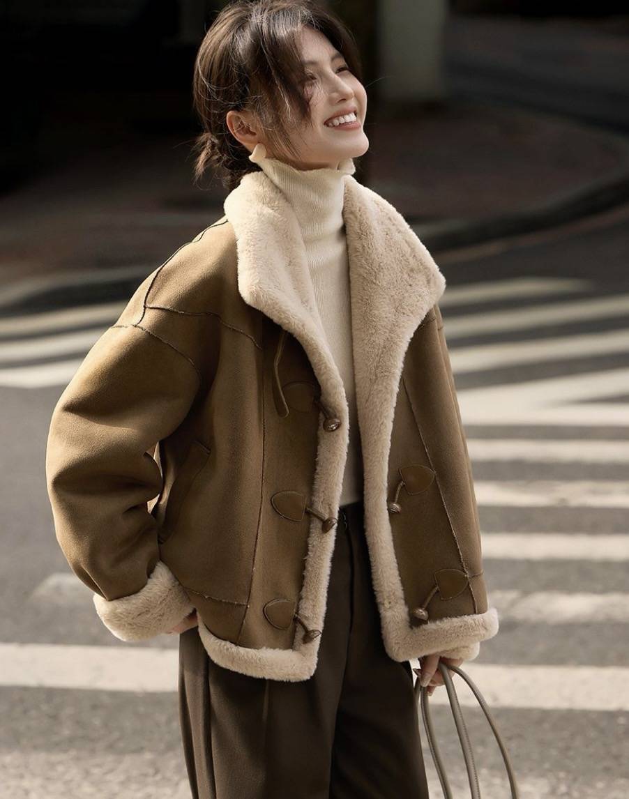 最令人称绝的是那些"藏而不露"的智慧:外套整体的造型休闲感十足,一反冬季厚重臃肿的刻板印象,而内在暗衬的羔羊毛柔软细腻,指尖触及的瞬间便漾起暖意。