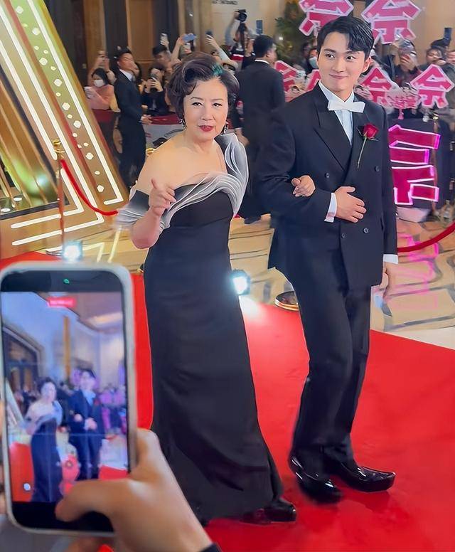 脸上的妆容也是精致得体,虽然年纪不小了,但整个人的气色看起来非常好,脸上带着淡淡的笑容,尽显出优雅的风韵。