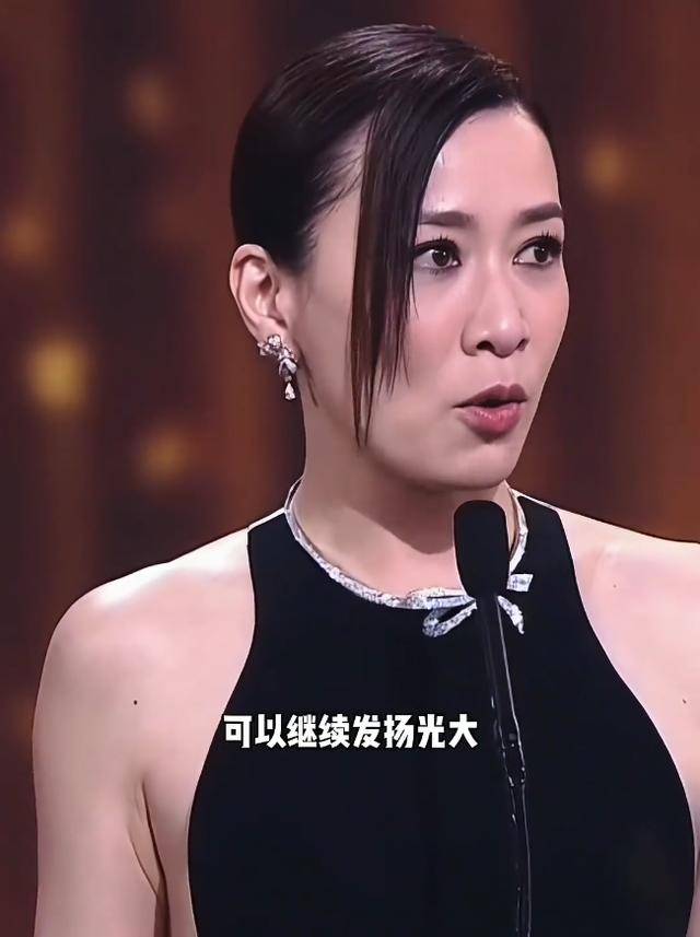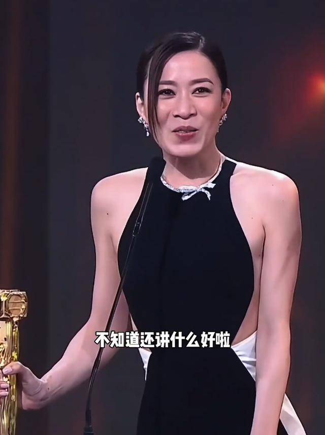 内场领奖时她换了个姿势坐,裙摆铺开像朵盛开的花,腰背挺得笔直,举手投足都是大家闺秀的范儿。获奖感言说得又真诚又得体,声音温柔但有力,听得人心里暖暖的。这时候再看她,哪是来领奖的?分明是来巡视领地的女王!
