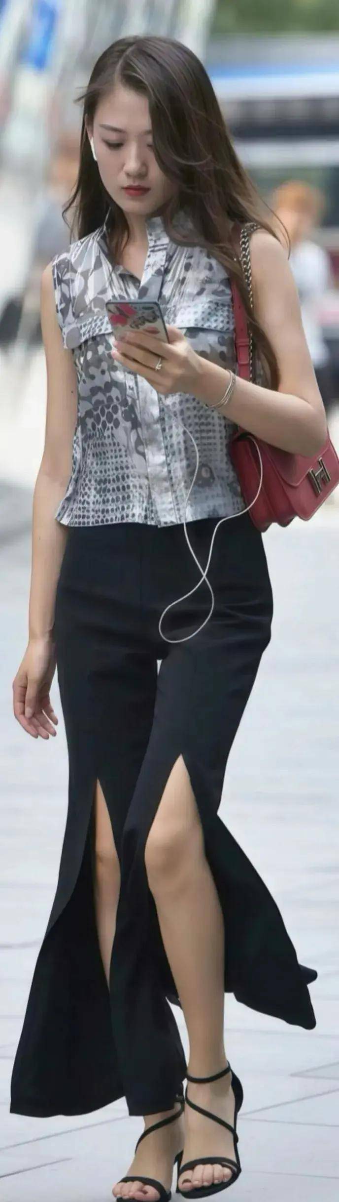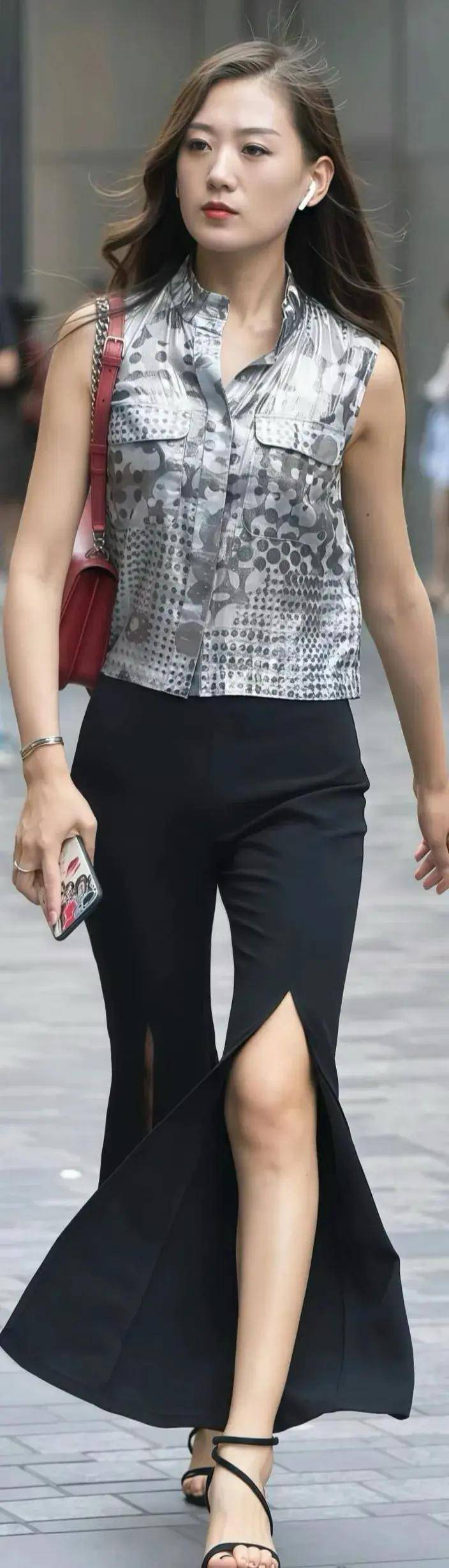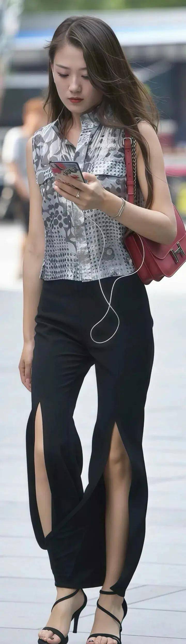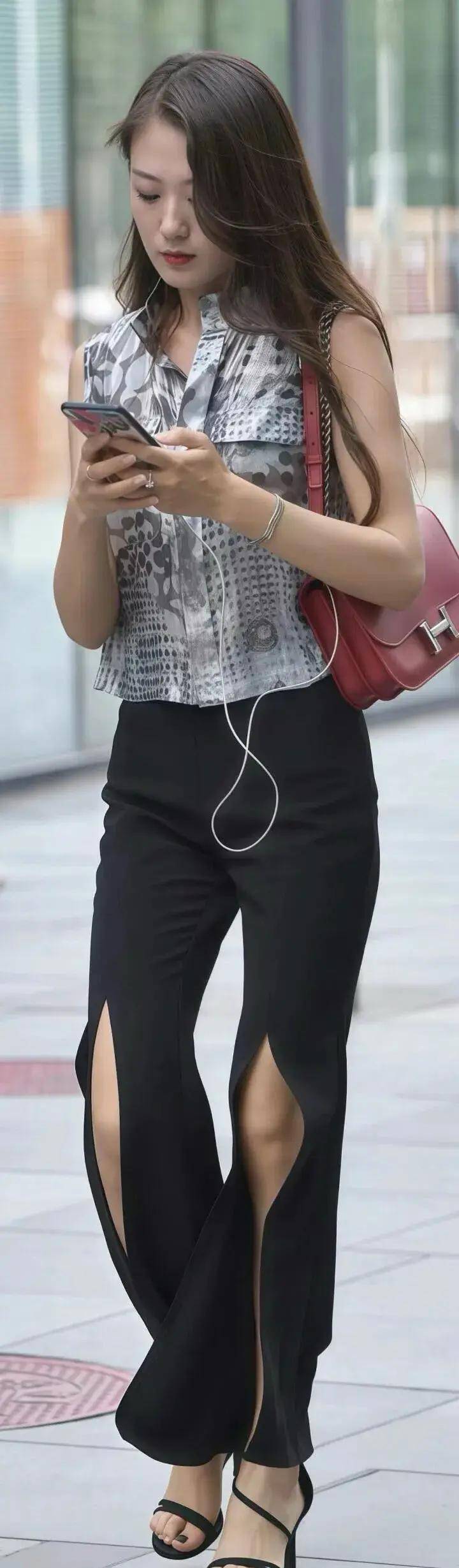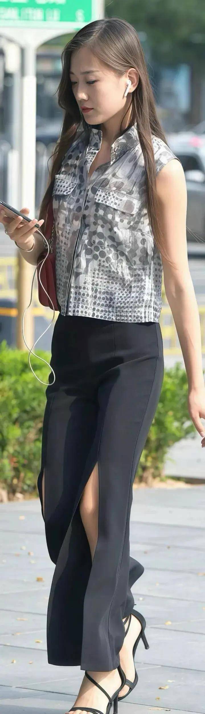 拖地长度+高跟鞋:微拖地裤脚搭配高跟鞋,走路带风,气场全开,尤其适合打造通勤或约会造型 。
