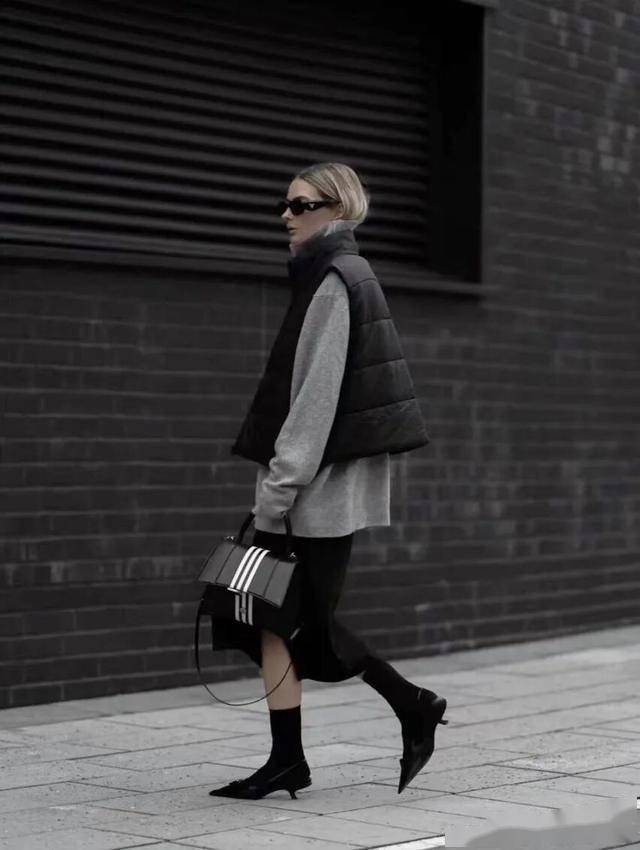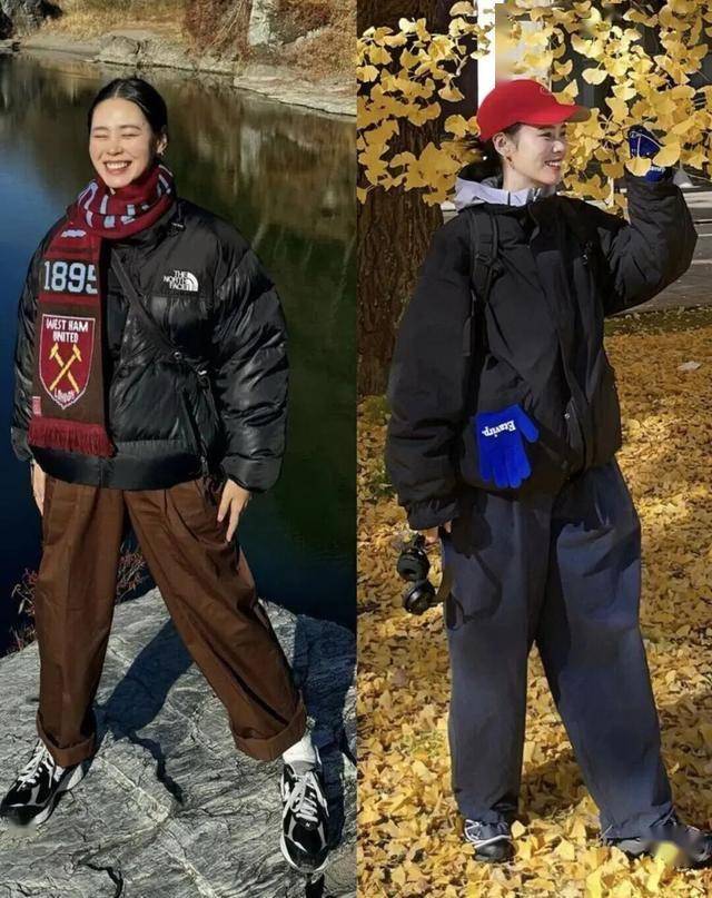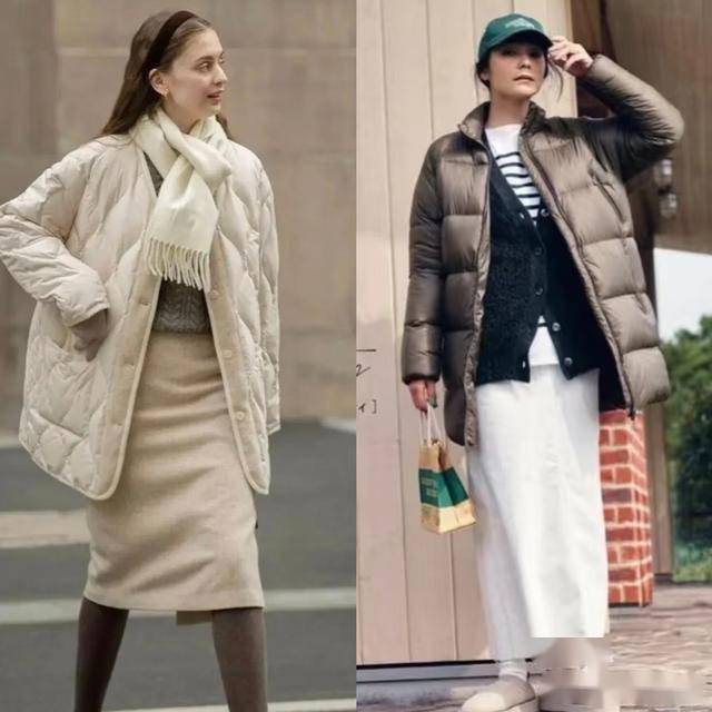 总结:短羽绒配直筒裤,解决“显腿型”问题,减龄又利落;配半裙,增加“女人味”,气质感升级。两者都不需要复杂的搭配技巧,选对版型和颜色,就能轻松穿出时髦减龄的效果。