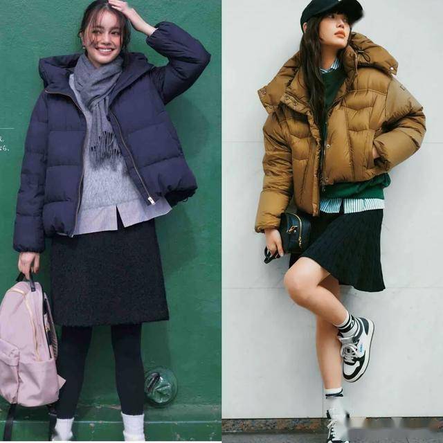 短羽绒+针织裙:针织裙柔软贴身,选“微宽松”版型(避免太紧身显胖),搭配短羽绒的“蓬松感”,温柔又减龄,适合日常出门;