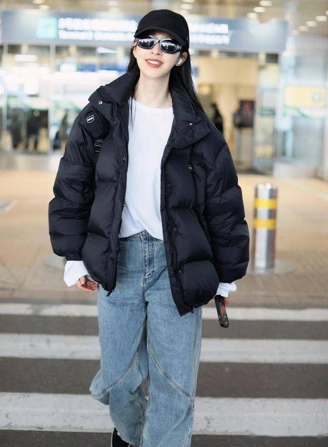 短羽绒的优势是“短”,能露出腰线,而直筒裤刚好能承接这种利落感——无论是牛仔直筒、深灰毛呢直筒还是白色烟管直筒,裤型宽松有度,能完美遮住臀腿的小赘肉,同时通过“直线条”修饰腿型,让腿看起来更直更长。