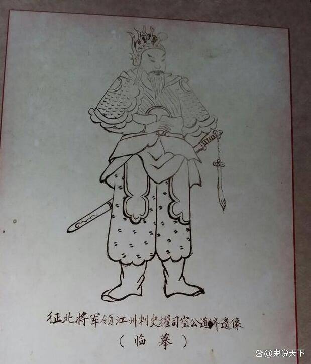 🎯 图片3描绘的“征北将军领江州刺史擢司空公道济遗像”,正是檀道济的临摹画像,下方题字庄重肃穆,右下角亦有“@鬼说天下”。这暗示檀道济作为被冤杀的名将,在民间记忆中有极高地位——他的清除,也标志着刘义隆彻底转向宗室依赖。