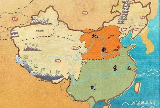 🌳 图片2所示为中国古代地图,标注“北魏”“宋”“刘”等南北朝疆域,以及平城、建康等地名。此图展现了刘义隆时代的地缘格局——北方强敌环伺(北魏),南方需稳定内部。而恰恰是在这样一个需要团结的时代,内部却因权力斗争崩解。