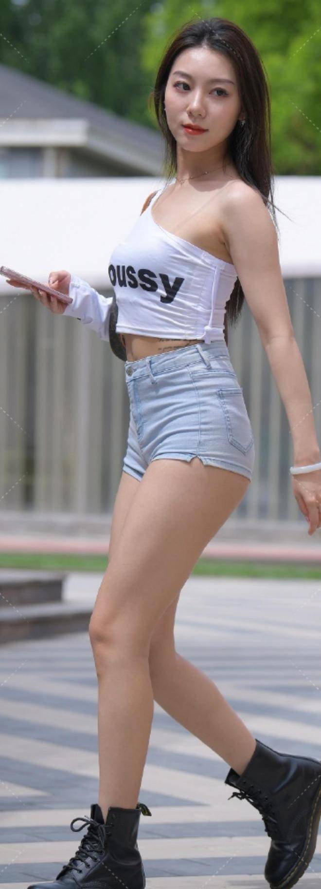 牛仔短裤:塑形力强,搭配修身背心、露脐短T或简约衬衫,突出腰臀曲线。