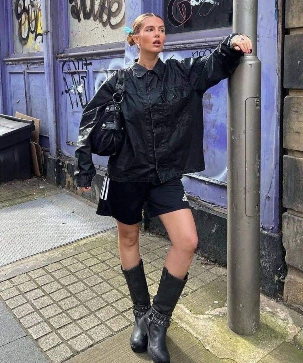 搭配牛仔裤或皮裤,