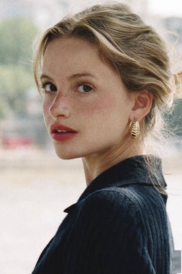 日常休闲:细链麦穗耳钉(长度2-3cm),搭配高领毛衣,露耳垂显精致。