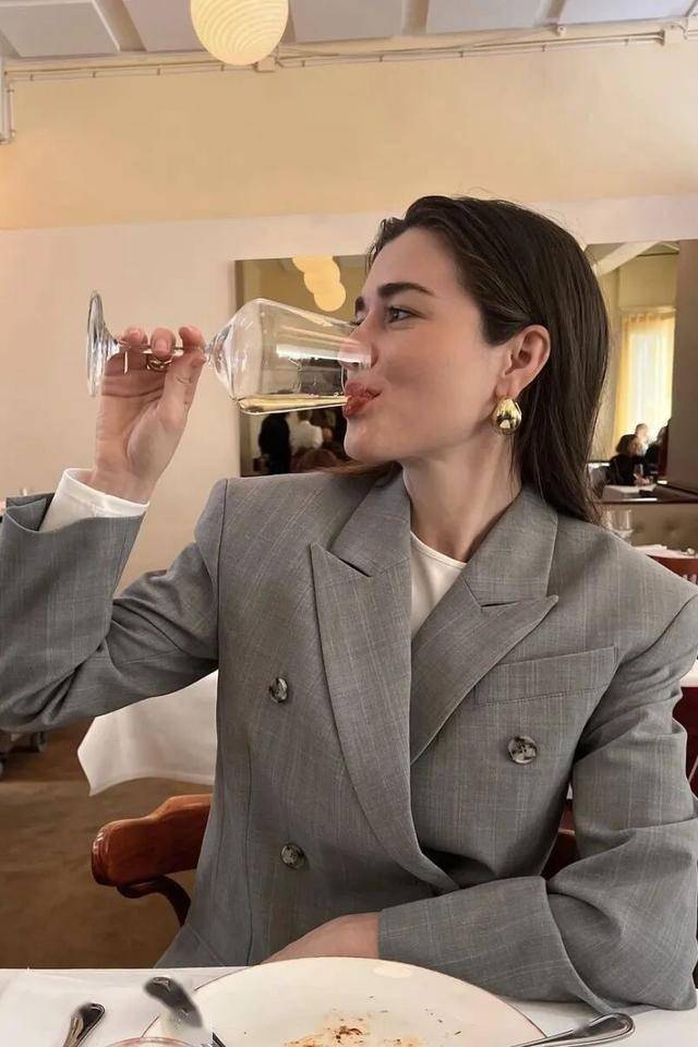 如果不想太过贵气逼人,也可以选择轻量感的金色首饰,少量多件的叠搭,少了贵感,多了质感。