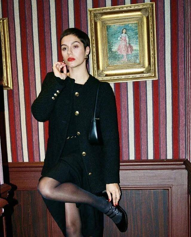 特别是黑色款的小香风,作为很多人的过年战袍,金色的纽扣,正好可以跟金色耳环和项链相呼应。