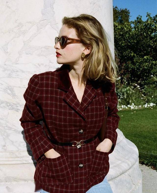 或者选择饱和度低点的红色外套,即便大面积穿,也能成为金色首饰的质感陪衬,