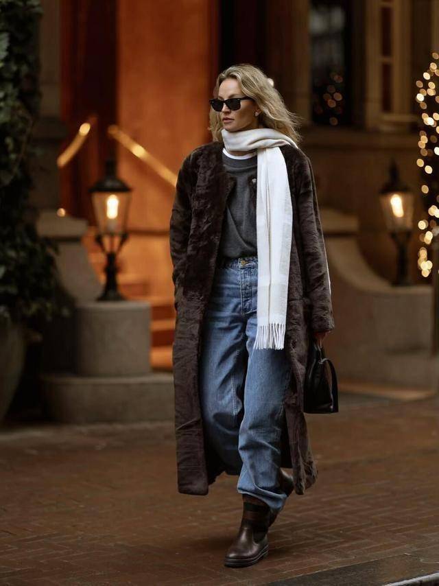 配饰点睛:金属细项链、皮质腰带、纯色围巾,强调低调精致感。