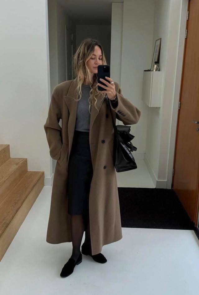 廓形大地色大衣:卡其色显白,驼色显贵,内搭简约毛衣即可高级感拉满。