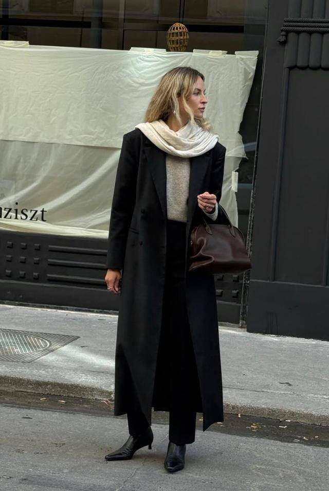 黑白灰:黑色大衣配白衬衫是永恒王炸,内敛中透出知性;灰色自带清冷滤镜,适合打造“格雷系”知识分子风。