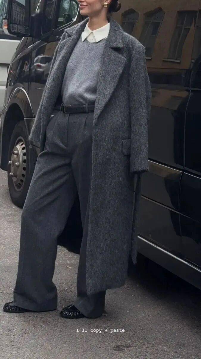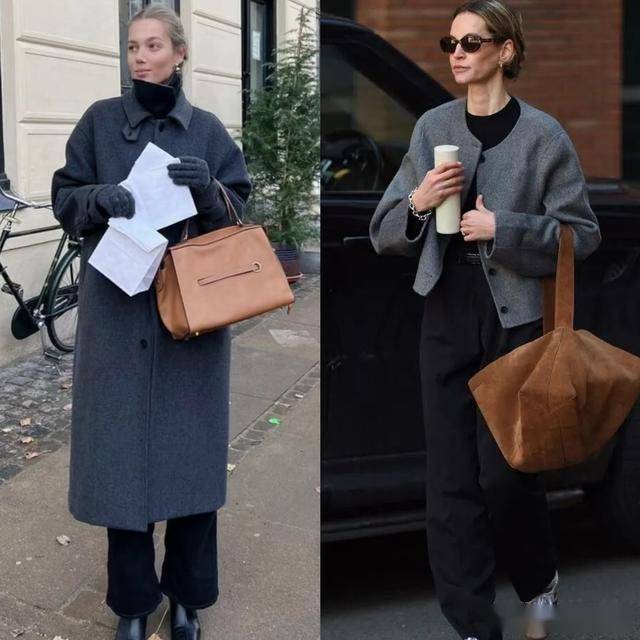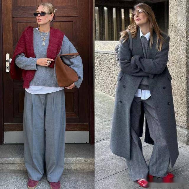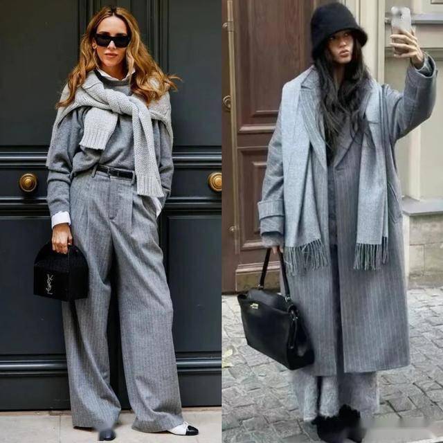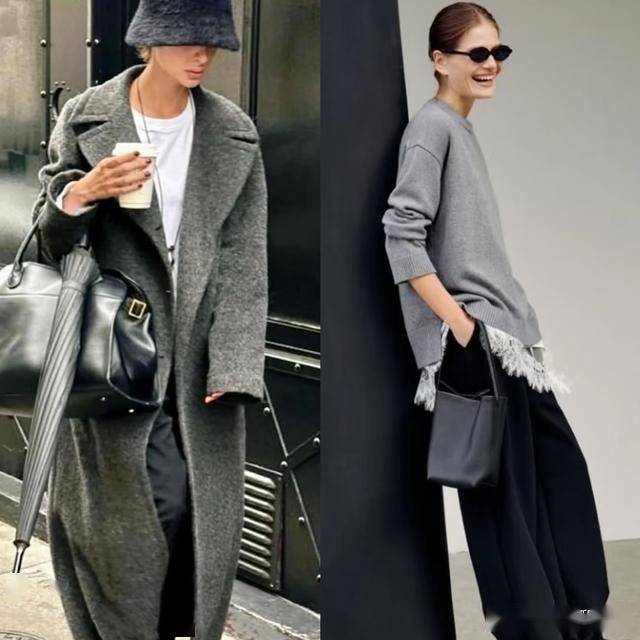 灰色:被称为“沉默的高级”,尤其炭灰、高级灰等色调,能轻松打造通勤与日常兼具的优雅造型。