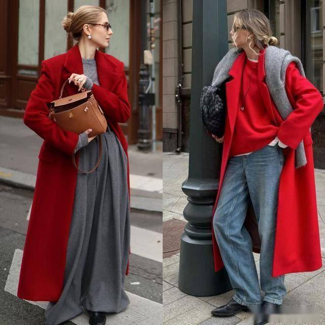 巧用小面积亮色点缀:如红色围巾、紫色丝巾,提升整体造型记忆点