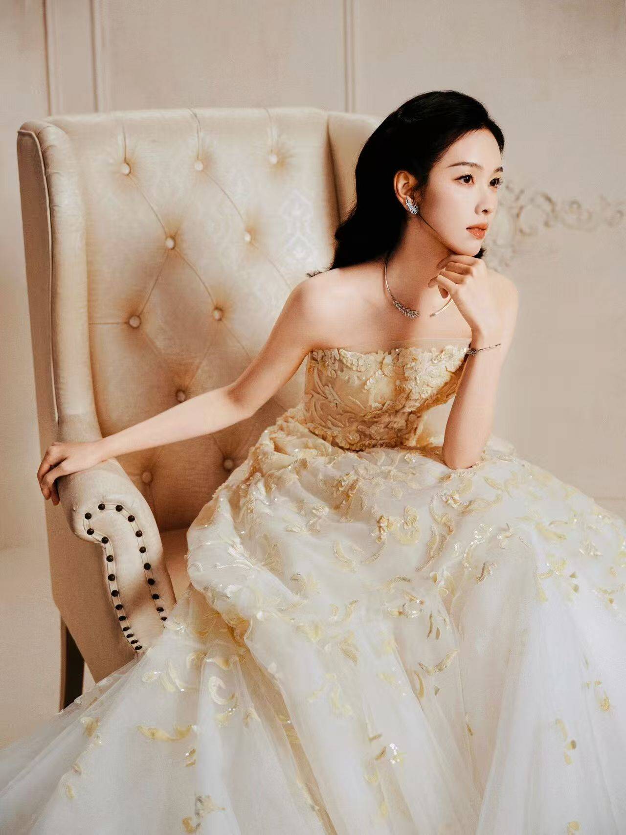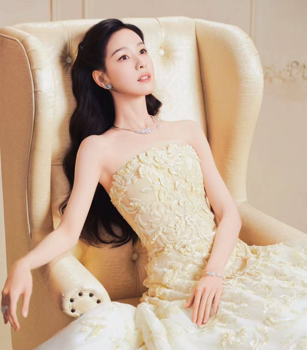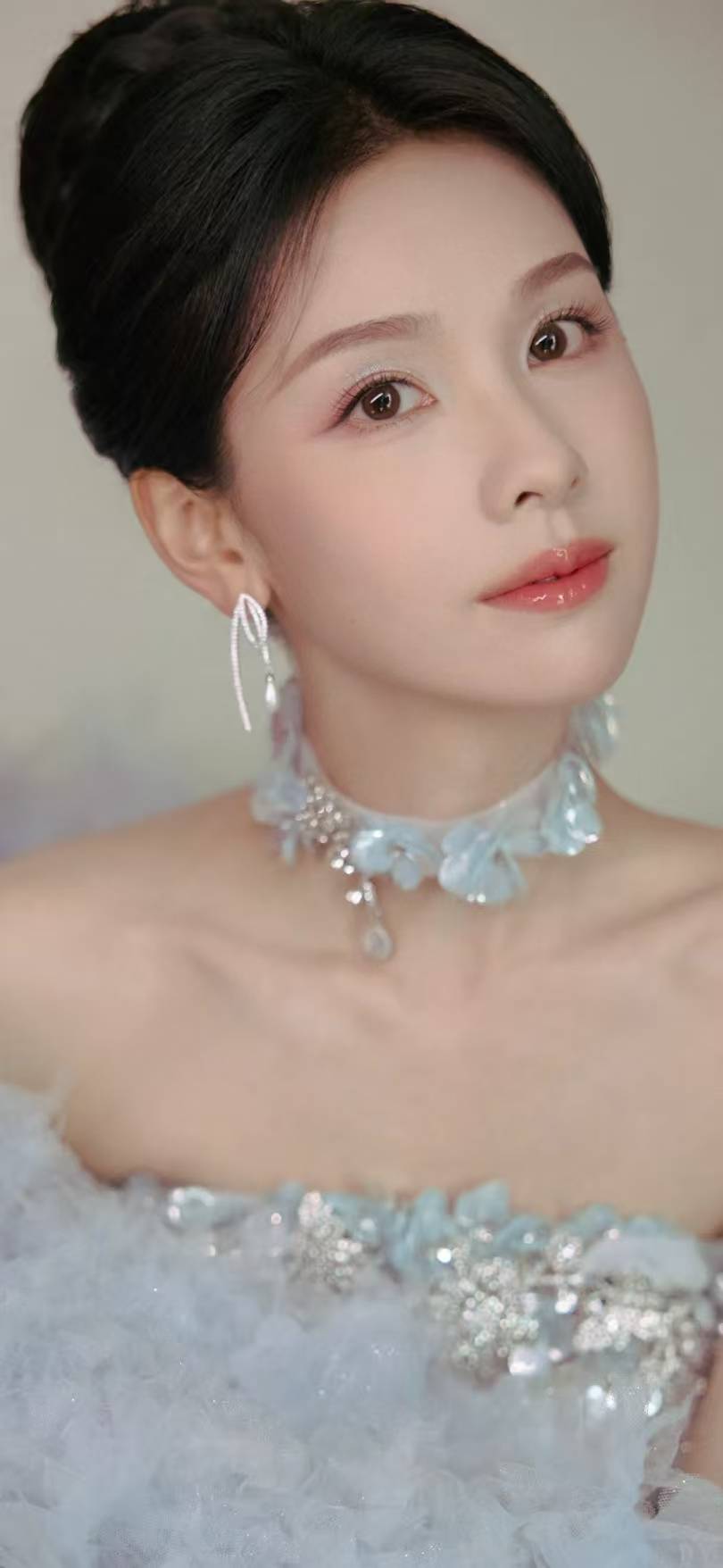 这身造型之所以被称为“清冷美学天花板”,不仅在于服装设计的巧思,更在于陈都灵自身气质与之的高度契合。冷白肌肤与幽蓝裙身相得益彰,宛如一颗行走的人间蓝宝石,通透而静谧。她以高盘发髻搭配简约珍珠项链,突出优雅的肩颈线条,妆容清淡却精致,眉眼间流转着温柔与疏离并存的气韵,将东方仕女般的清冷感演绎到极致,生图状态被赞为“白月光神女”。