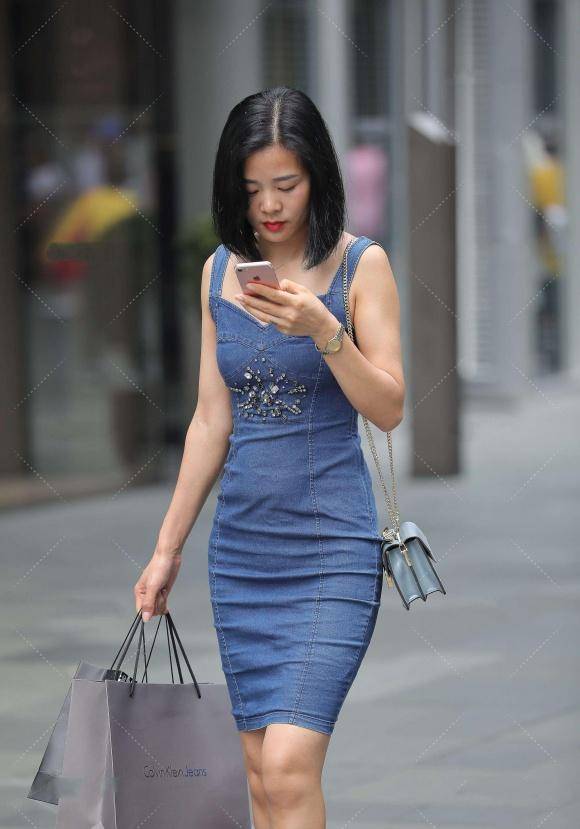 在都市的律动中,一步裙轻摆,