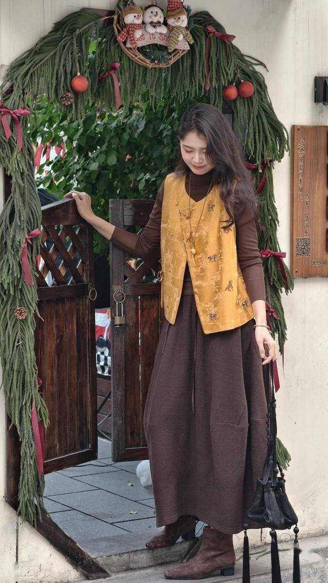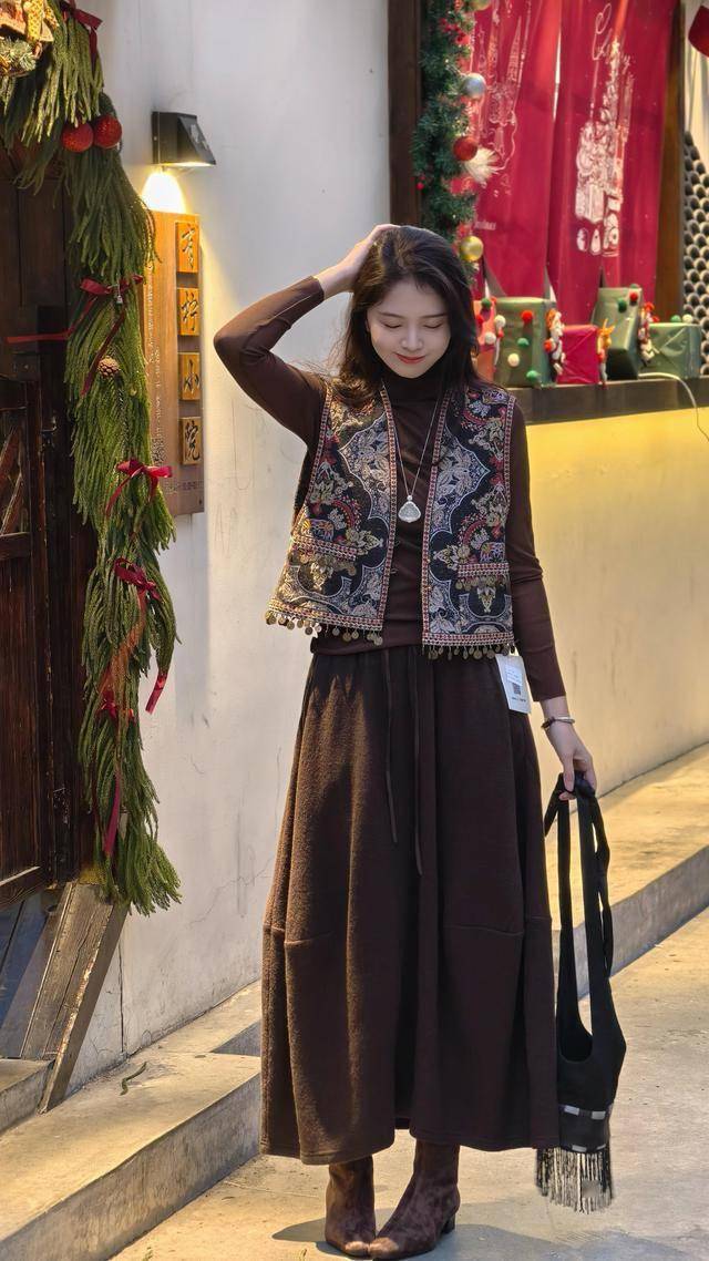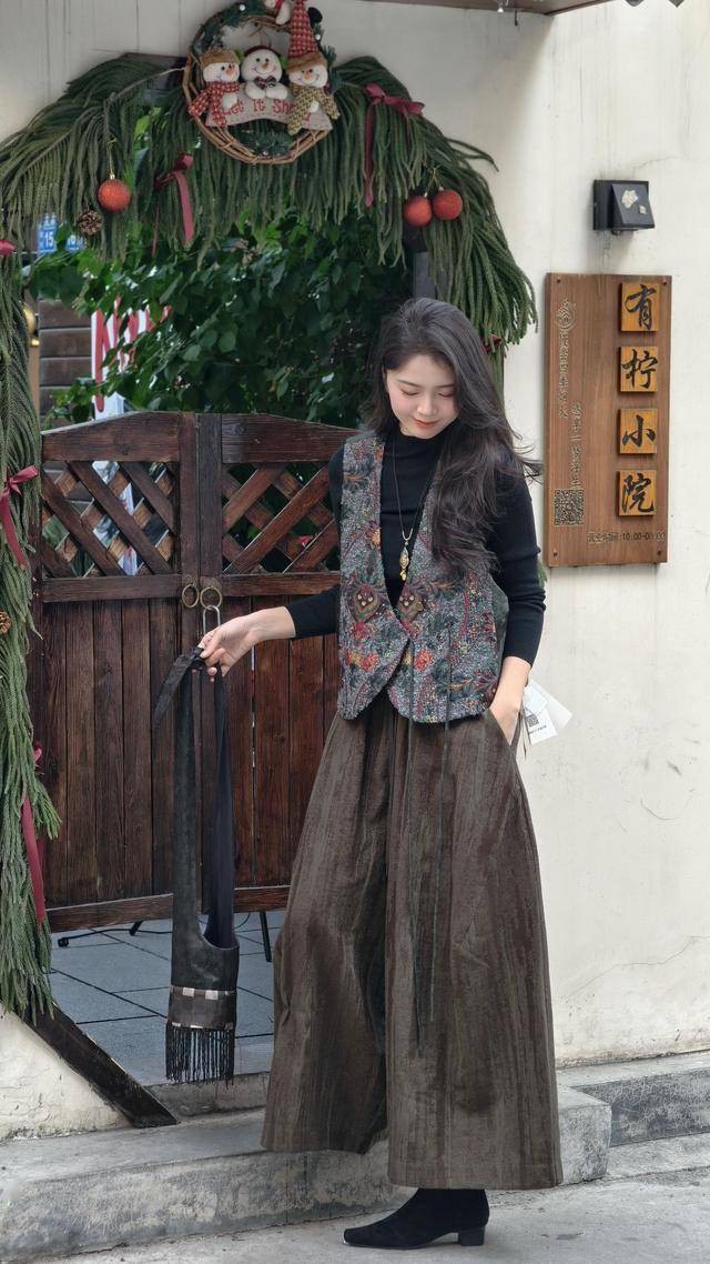 或是选择一件深色系的针织衫,