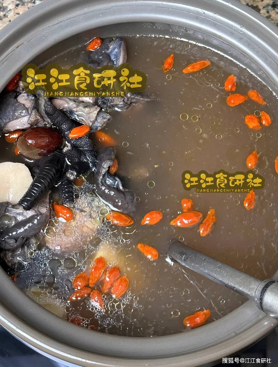 4. 调味时机:关火前5分钟,根据个人喜好放入几颗枸杞和一小块黄冰糖,冰糖的甜更为清润。