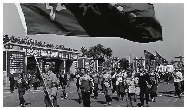 不远处的标语上写着:热烈欢送沈阳市革命知识青年上山下乡大会,这是她们奋斗的一部分。