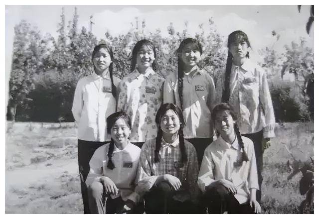 每一位女同学的头发都扎成了大辫子,显得十分整齐,也让人感受到那个年代的青春气息。