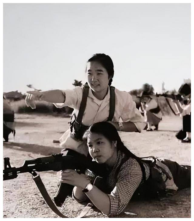 她们正在用冲锋枪练习射击,展现了革命时期女性的果敢与坚定。