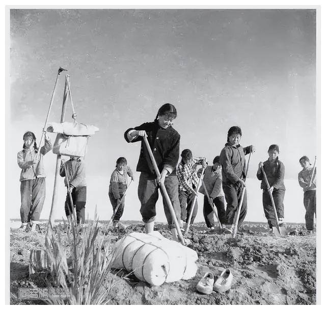 在田间劳作的女知青们赤脚走在土地上,辛勤劳动的背后充满了坚韧与坚持。