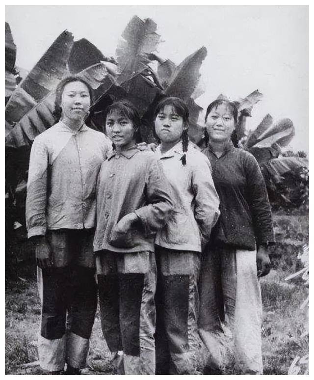 从照片中可以看出,这些女知青所在的地方应该是南方,远处可能有芭蕉树,给人一种热带的感觉。