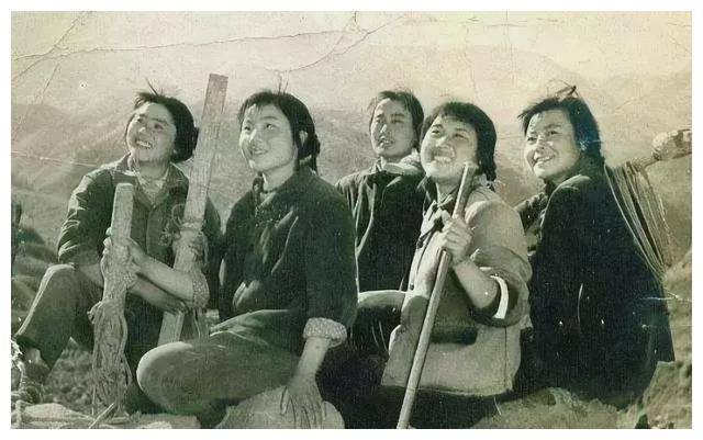 女知青们背后的红旗上写着上海市,这说明她们应该是来自上海的知青。