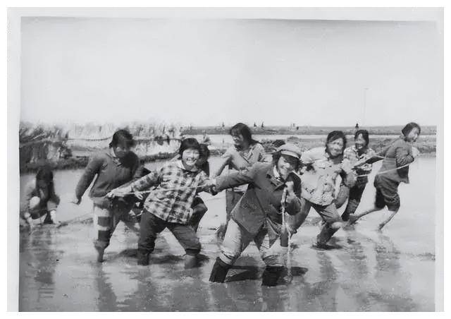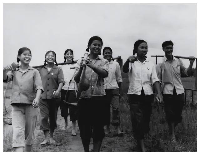 女知青们赤脚走在水田里拉农具、踩水车,腿上沾满泥土却笑容灿烂。这种“与土地亲密接触”的姿态,象征着她们从城市学生到劳动者的身份转变。