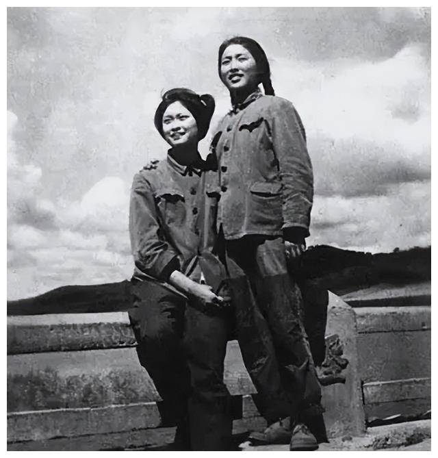 两位穿军装的女知青望向远方的画面,眼神坚定而深邃,或许在思考个人命运与时代洪流的关系。