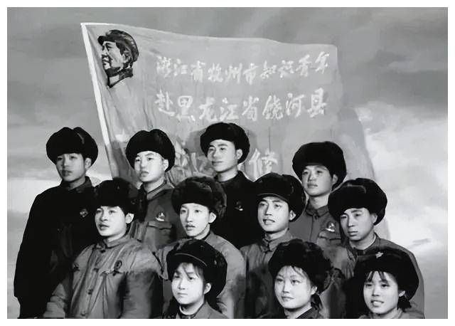 这张照片拍摄于浙江省杭州市的知识青年,他们在前往黑龙江饶河县之前合影留念。